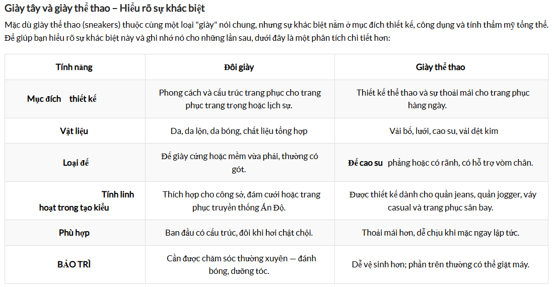 So sánh giày tây và giày thể thao